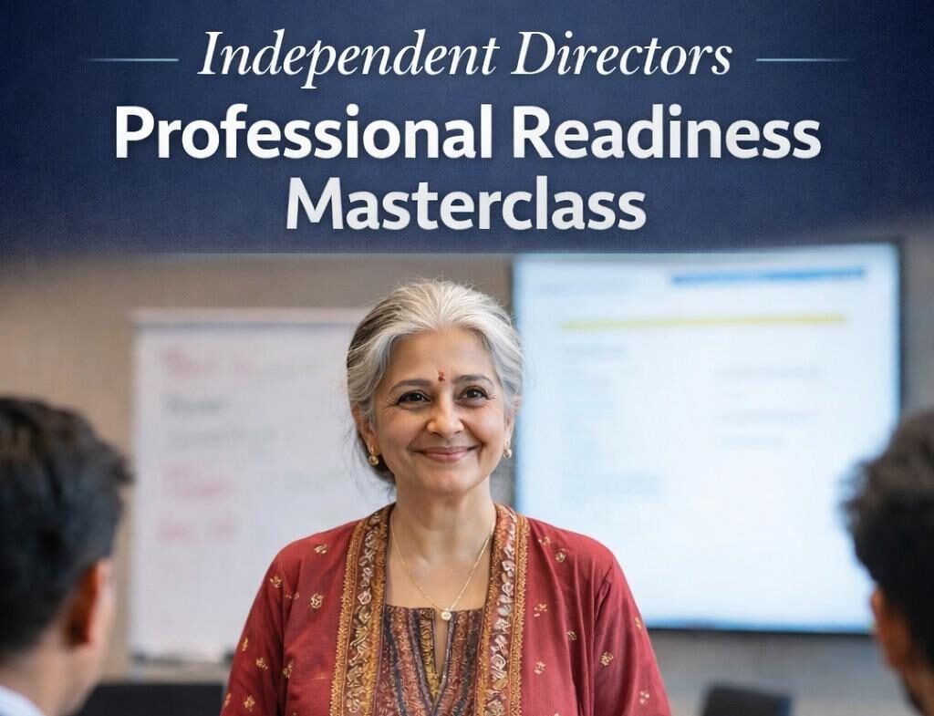 Independent Directors Professional Readiness Master Class is a comprehensive video training program designed to help professionals understand eligibility criteria, governance laws, board composition, selection strategy, and appointment processes to confidently secure Independent Director positions.